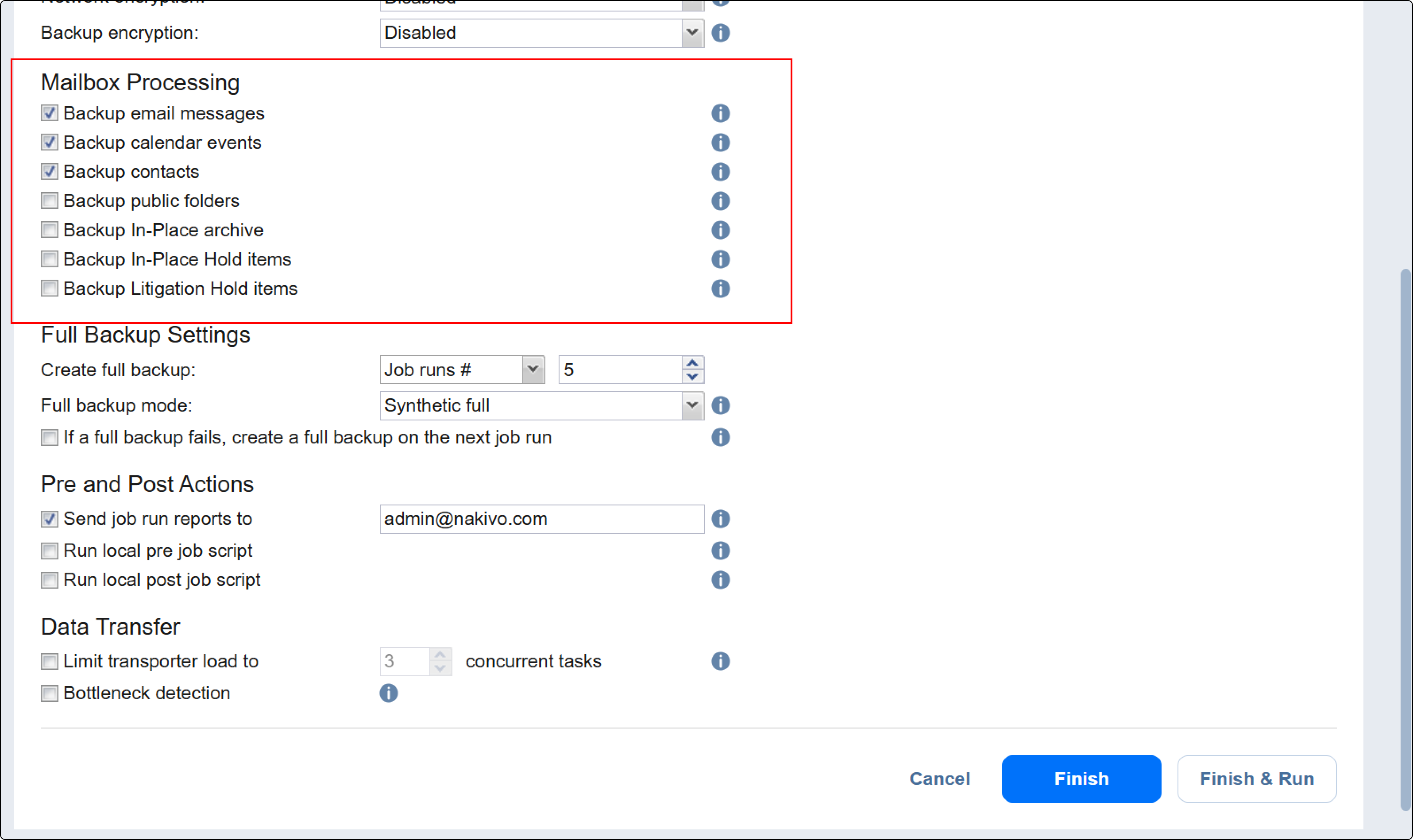 NAKIVO Backup & Replication can send email notifications on job completion status to specified recipients. This feature complements global notification and allows you to configure notifications on a per-job level.