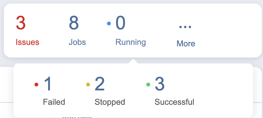 Issues: Total number of issues/alarms for the job. When clicked, the Alarms & Notifications dialog box is displayed.