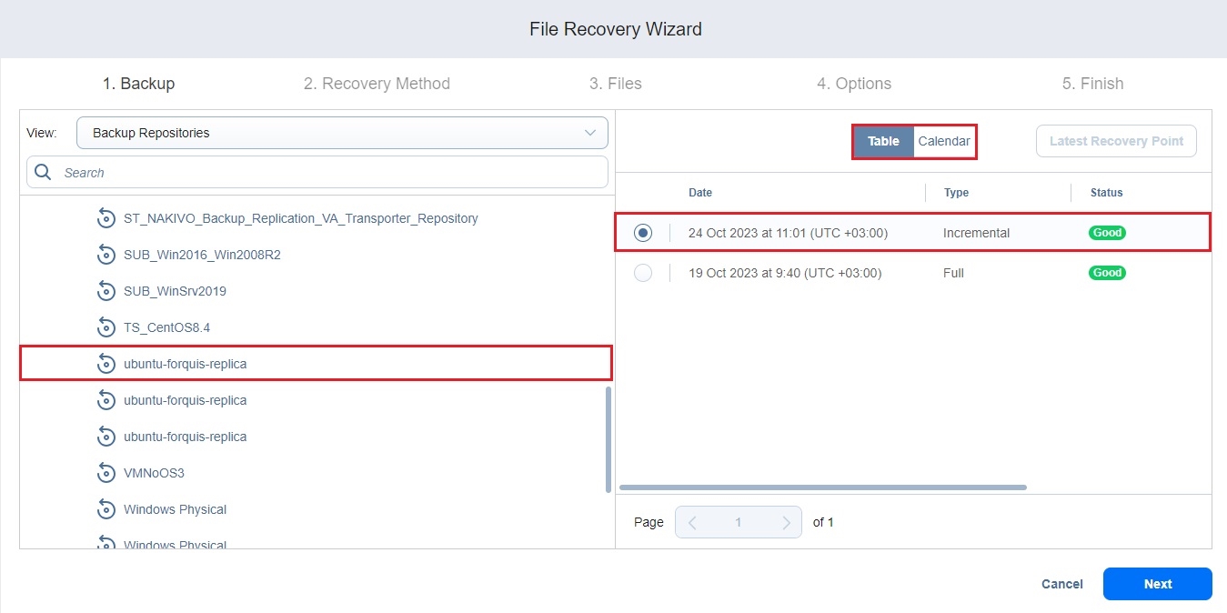 1. On the Backup page of the wizard, select a backup using the Backup Repositories or Jobs & Groups view in the left pane.
