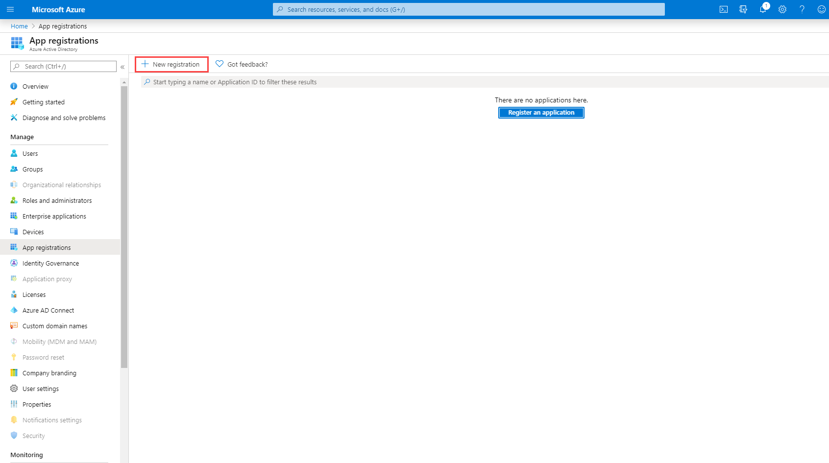 Click New registration on the App registrations page.