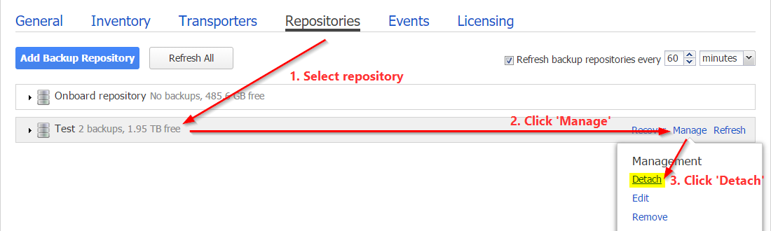 Detach all repositories.