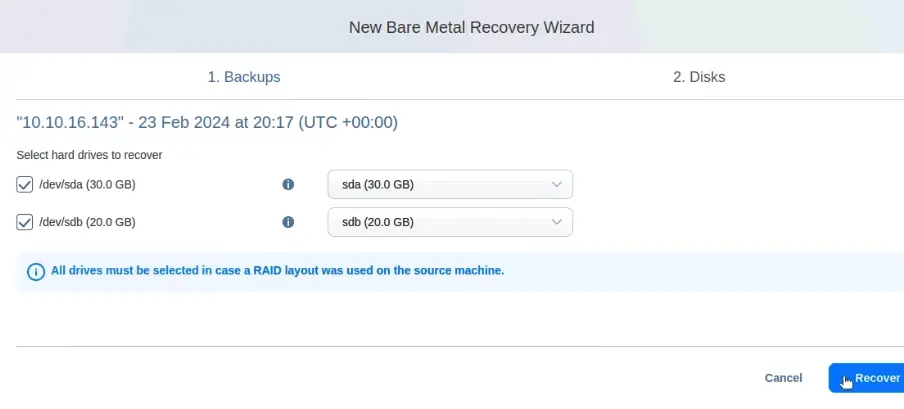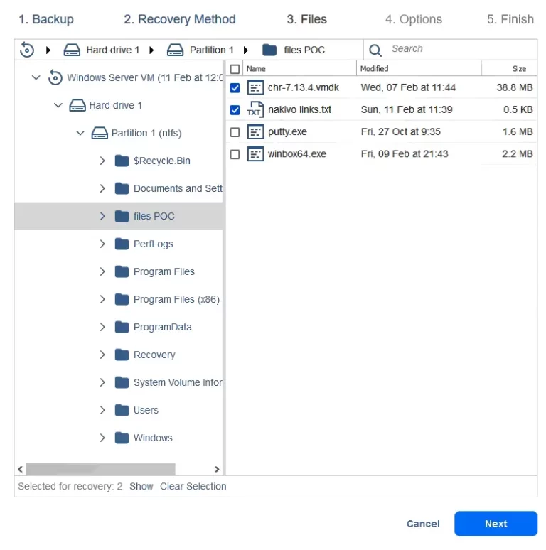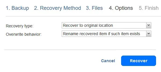 Log in to the NAKIVO Backup & Replication web interface, select the VM backup, and proceed with the recovery.
