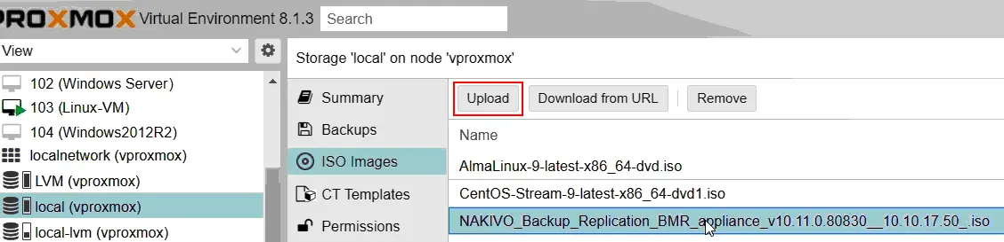 NAKIVO supports backing up Proxmox VM data and then recovering it to a VM on the same hypervisor or performing file- or object-level recovery. You may use the following instructions for backing up and recovering Proxmox VM data using an agent-based approach in NAKIVO Backup & Replication: