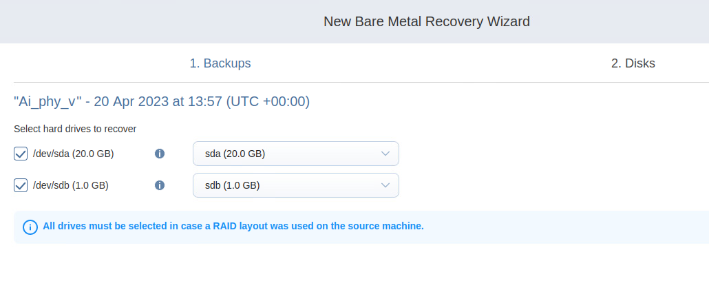 Bare Metal Recovery Wizard: Disks