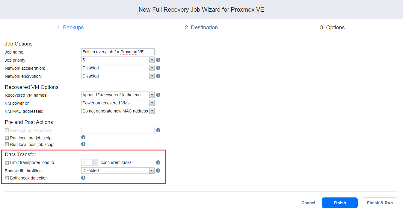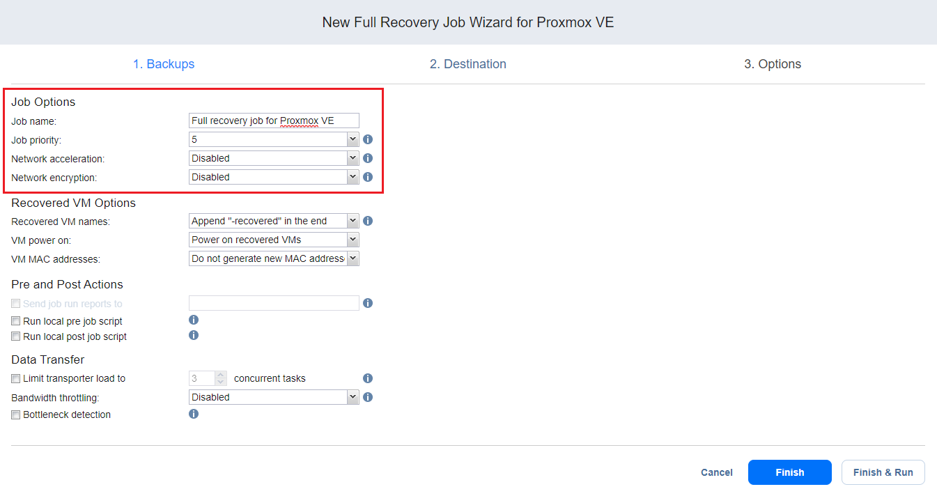 Full Recovery Job Wizard for Proxmox VE: Options