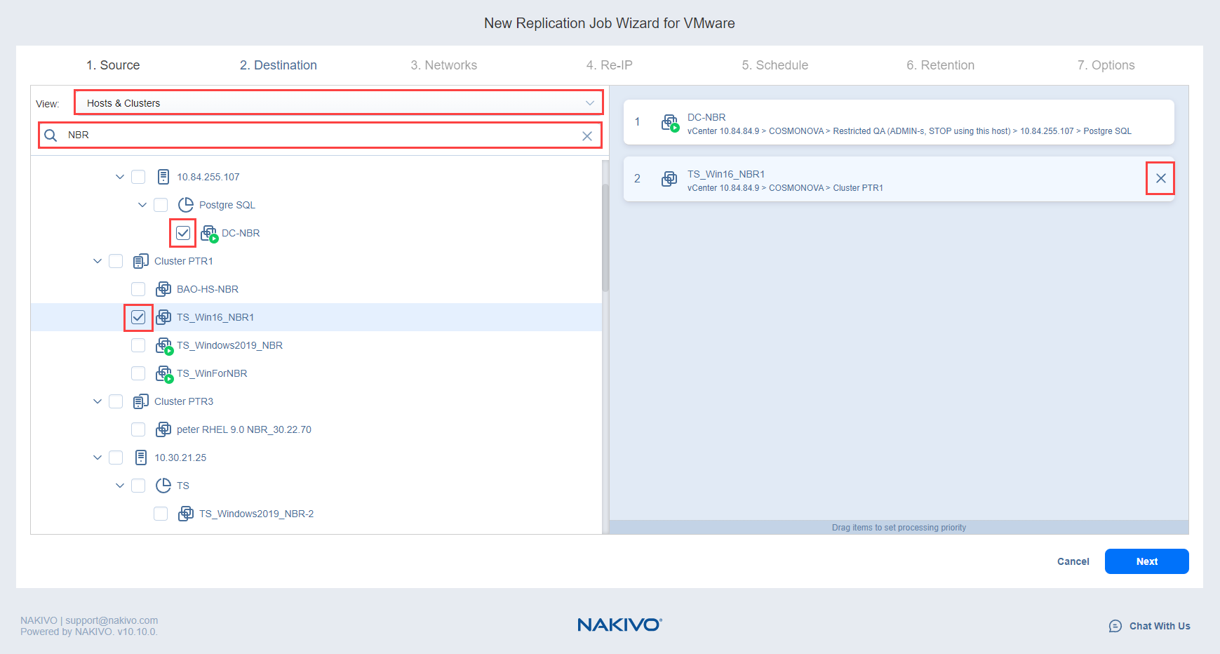 The selected items appear in the right pane of the page. You can reorder the selected items by dragging a VM or a container with the pointer to a new position. By doing that, you can specify to replicate the most important VMs first.