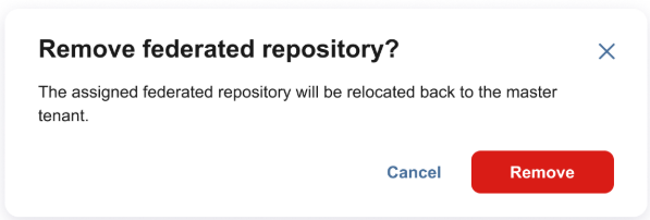 If a federated repository was assigned by the Master tenant, has no member in local tenant, does not contain any backup objects referenced by existing job(s), the following dialog box is displayed: