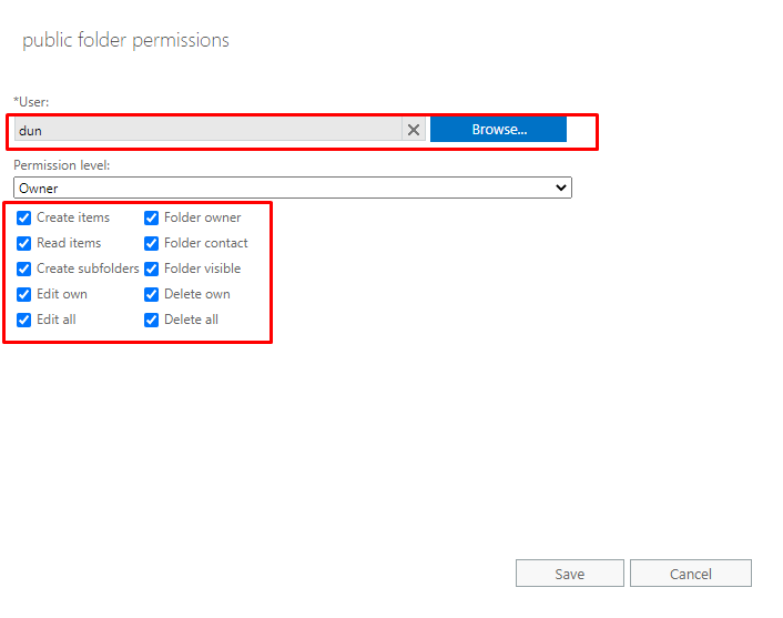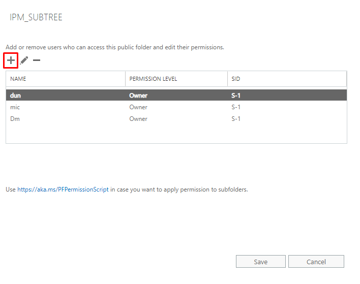 Guarda los cambios. El usuario deseado debería tener ahora los permisos IPM_SUBTREE necesarios para recuperar correctamente las carpetas públicas.