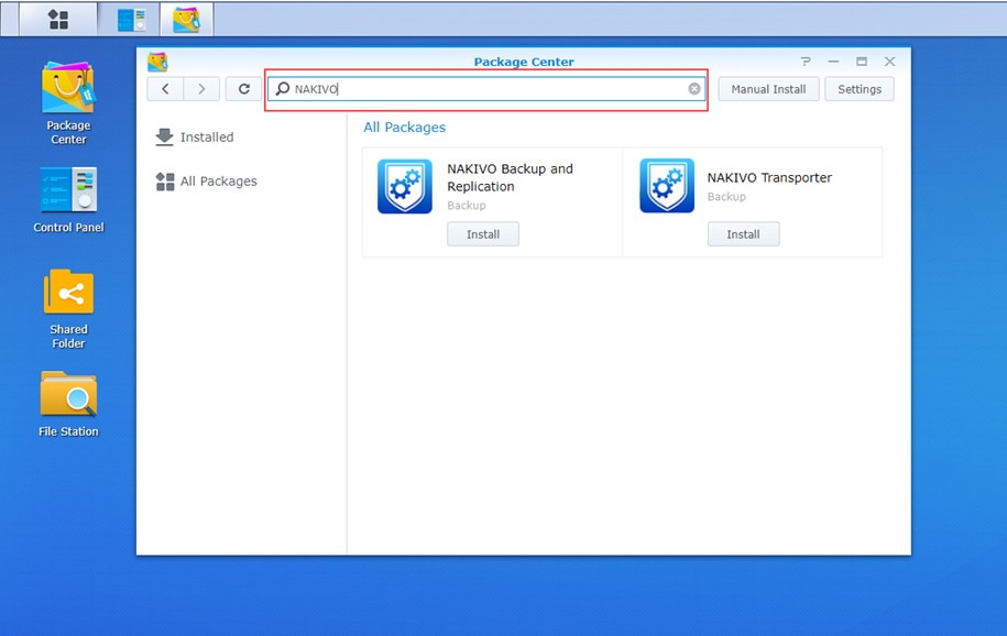 Para instalar automáticamente una aplicación NAKIVO Backup & Replication en un Synology NAS, haga lo siguiente: