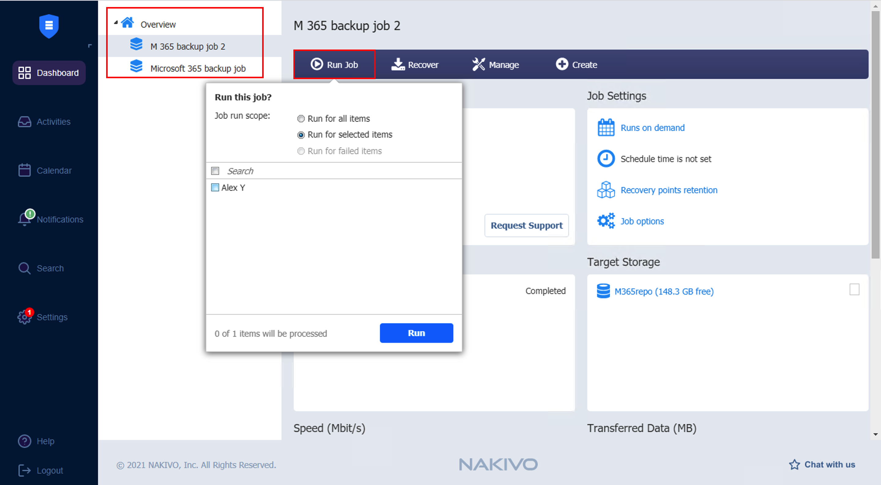 Ejecutar para los Elementos seleccionados: El job se ejecutará para los elementos seleccionados.