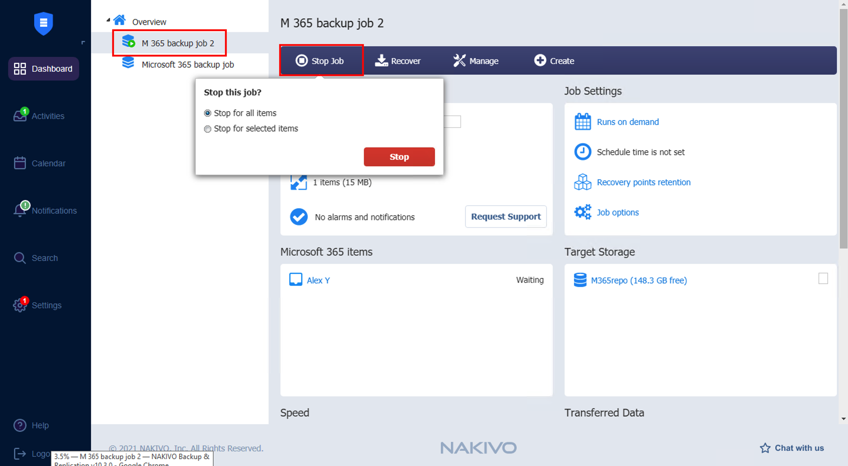 Vaya al Panel de control, seleccione el job de la lista de jobs y haga clic en Detener jobs.