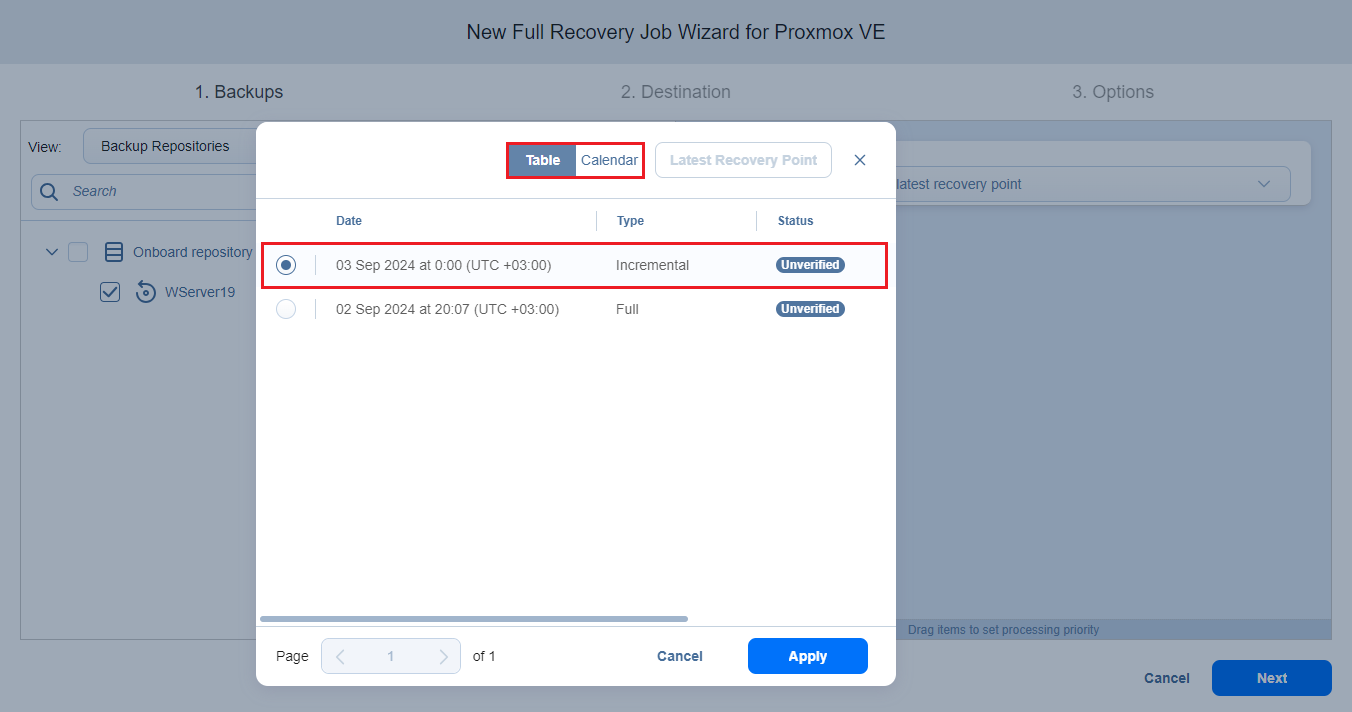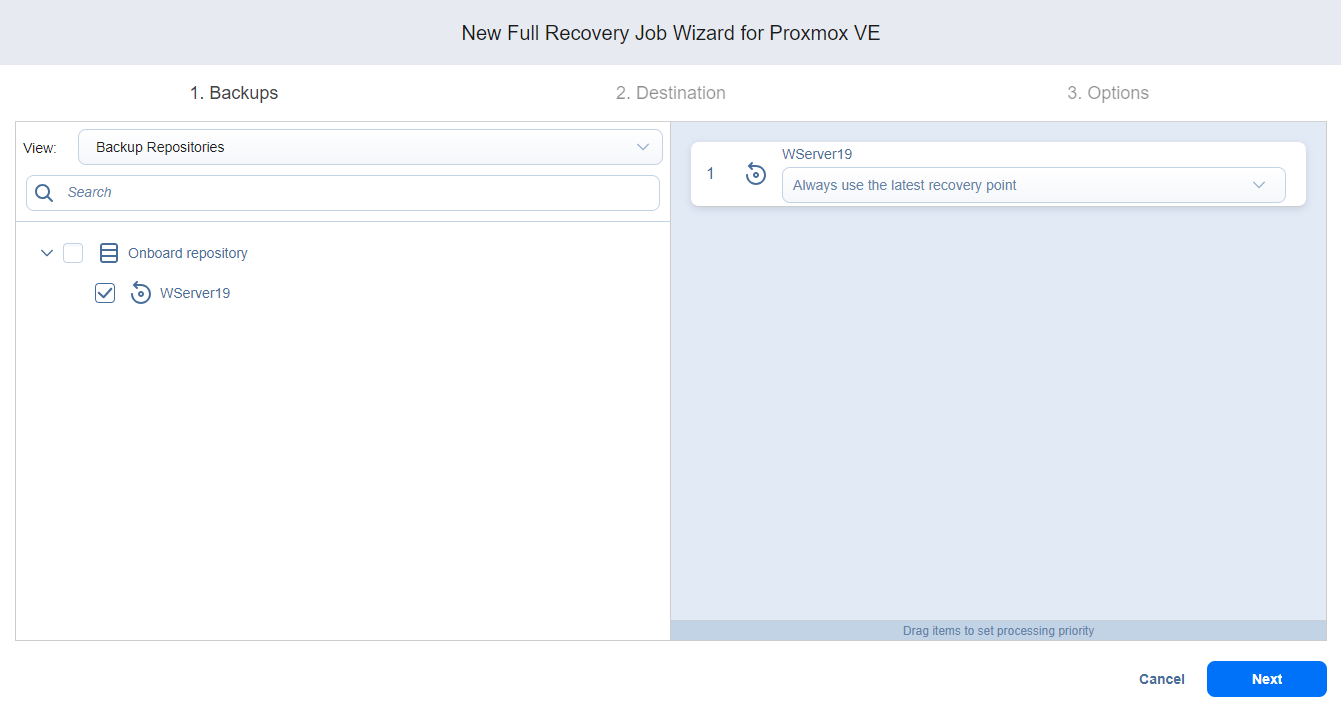 Asistente de Job de recuperación completa para Proxmox VE: Backups