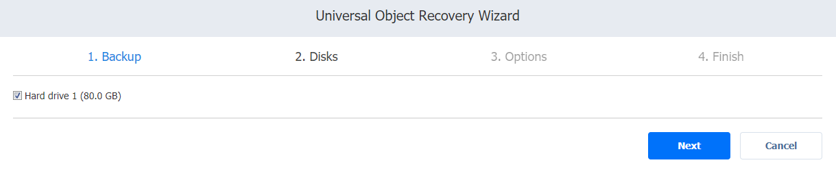 En la página Discos del asistente, elija uno o varios discos de la lista de discos. Haga clic en Siguiente para pasar a la página siguiente del asistente.