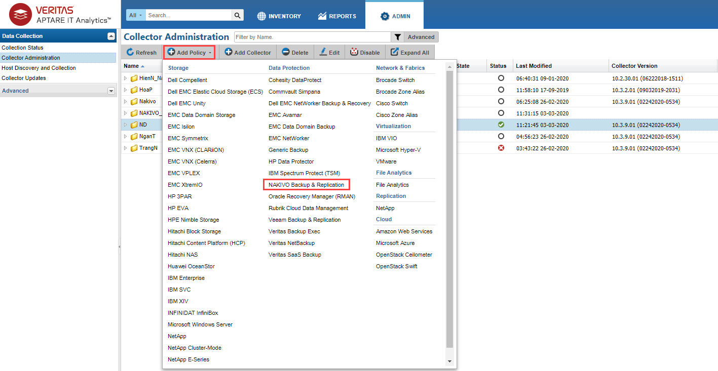 Instale APTARE StorageConsole Data Collector con el conector NAKIVO.