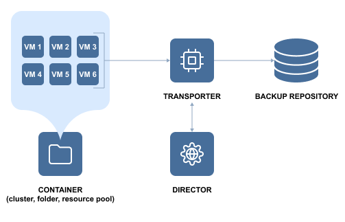 Las máquinas virtuales pueden organizarse en contenedores, como grupos de recursos, clústeres y carpetas. Esta forma de organización permite añadir recursos fácilmente cuando se solicitan y descargarlos cuando ya no son necesarios. NAKIVO Backup & Replication permite añadir un contenedor entero a un job de backups o de replicación. Todos los cambios en el contenedor (es decir, añadir o eliminar) se reflejan automáticamente en un job de backup o de replicación. Así, todas las máquinas virtuales importantes están continuamente protegidas. Si no es necesario hacer backups o replicar con frecuencia determinadas máquinas virtuales de un contenedor, puede excluirlas de un job de backup o replicación. El contenedor seguirá protegido pero no incluirá máquinas virtuales menos importantes. Esto ahorrará espacio en el Repositorio de backups y aumentará la velocidad de los jobs de backup o replicación. Por ejemplo, usted configura un job de backup para un cluster para que se ejecute diariamente, pero este cluster contiene un par de máquinas virtuales bastante masivas que no requieren backups frecuentes; usted puede editar el job excluyendo esas máquinas virtuales. NAKIVO Backup & Replication le preguntará si desea conservar o eliminar los backups realizados en ejecuciones de job anteriores.