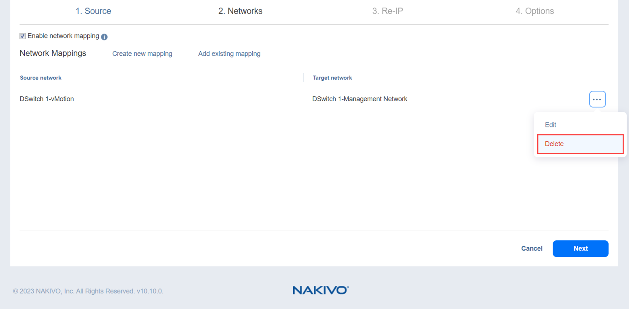 Pase el ratón por encima del elemento necesario en la lista Mapeos de la red y, a continuación, haga clic en el botón elipsis Gestionar situado a la derecha del elemento. A continuación, haga clic en Editar.