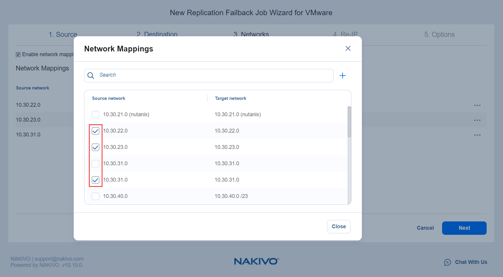Asistente para jobs de conmutación por error para VMware: Redes