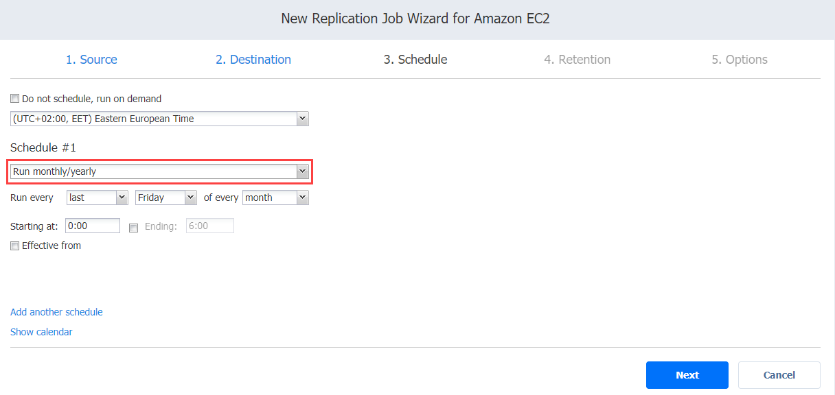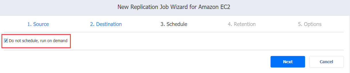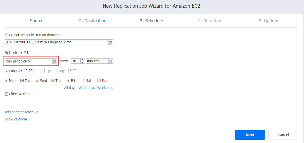 Asistente para trabajos de replicación de Amazon EC2: Programación