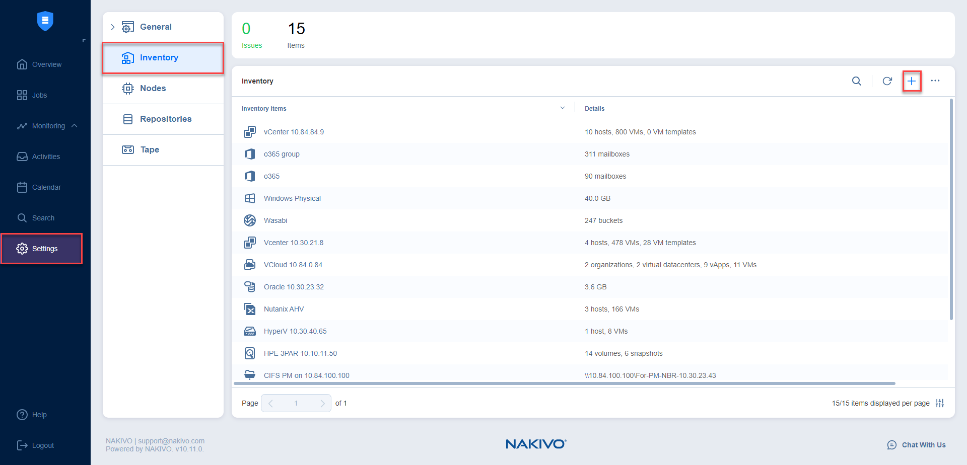Haga clic en Ajustes en el panel izquierdo de NAKIVO Backup & Replication.
