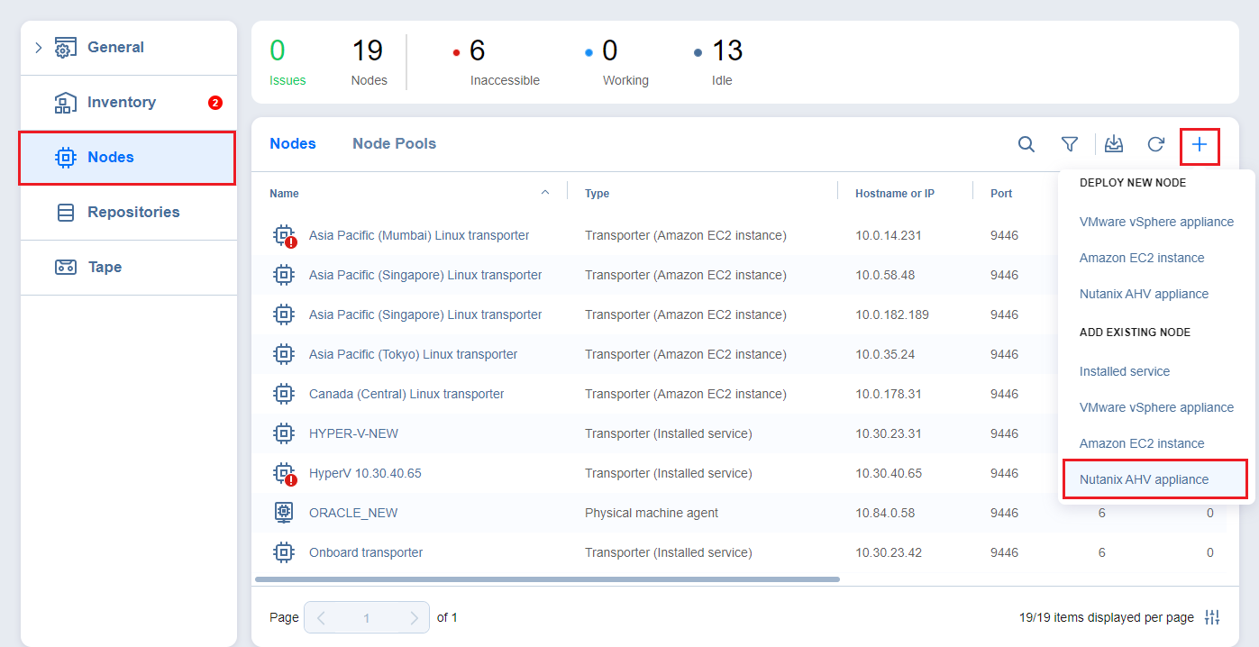4. Haz clic en Añadir. El nodo se añade al producto y puede utilizarse para hacer backups, replicación y jobs de recuperación.
