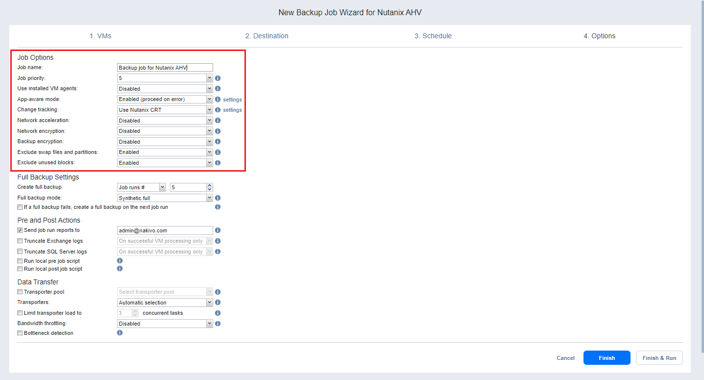 Finalización del asistente para nuevos jobs de backups para Nutanix AHV