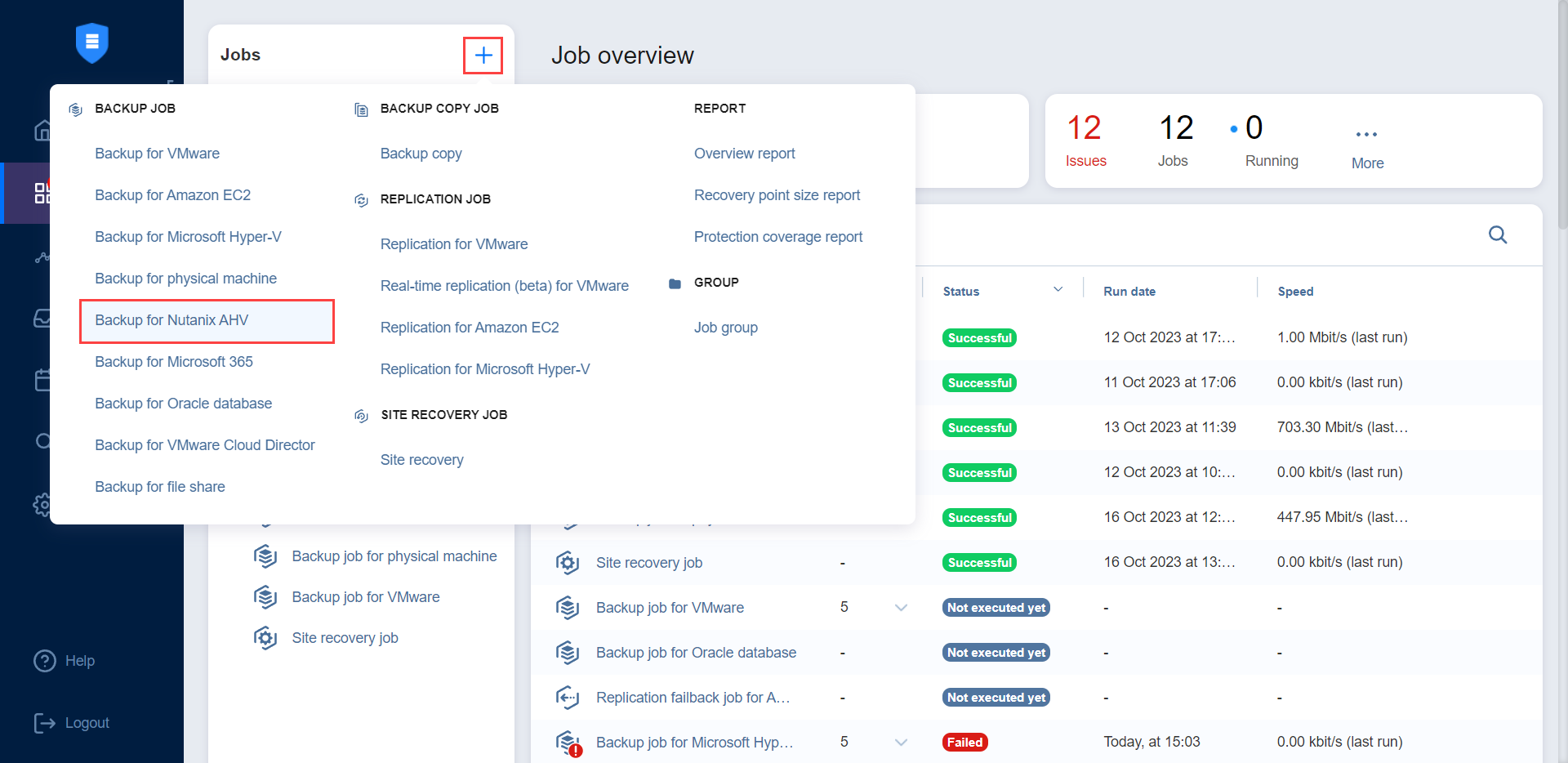Creación de jobs de backups de Nutanix AHV