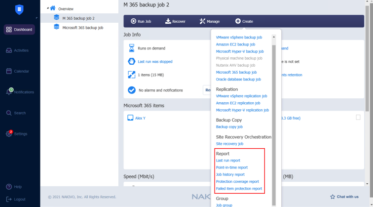 Seleccione el job para el que necesita generar un informe y haga clic con el botón derecho del ratón o haga clic en Crear.