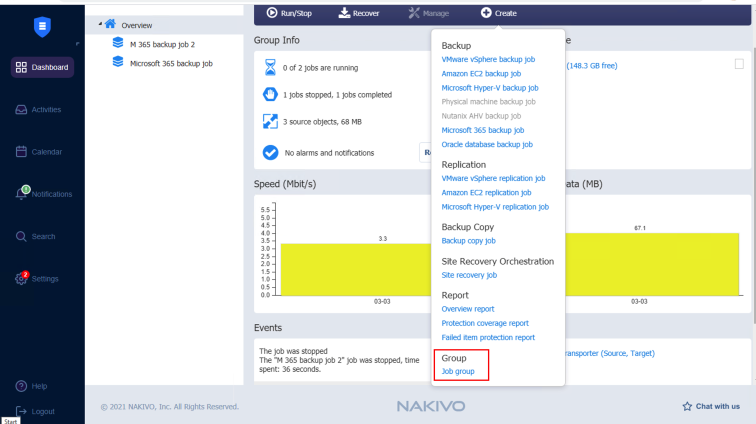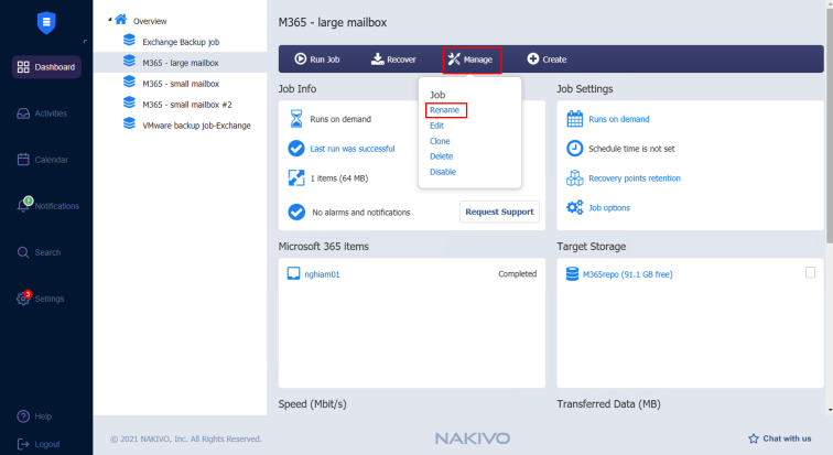 NAKIVO Backup & Replication le ofrece la posibilidad de desactivar jobs. Un job desactivado no se ejecuta según una programación, ni puede ejecutarse bajo demanda.