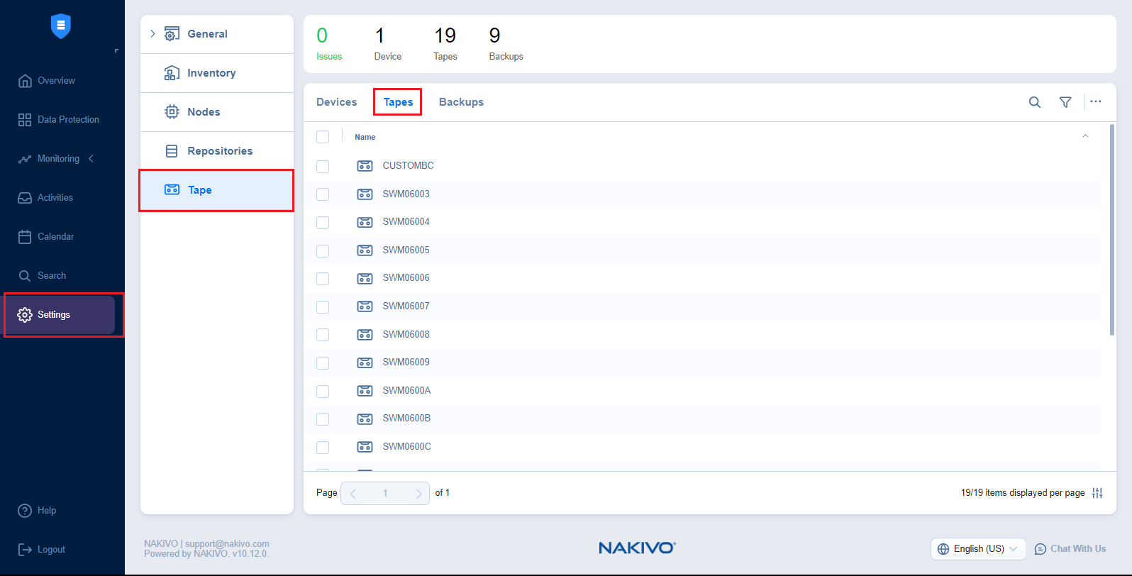 Vaya a la pestaña Cinta y busque el cartucho de cinta que contiene el backup necesario.