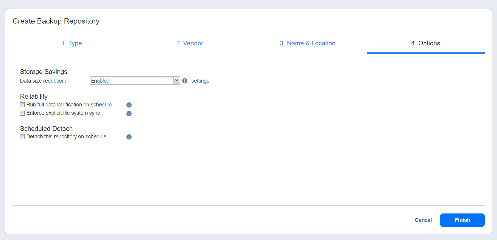 Haga clic en Finalizar para finalizar la creación del repositorio de backups.