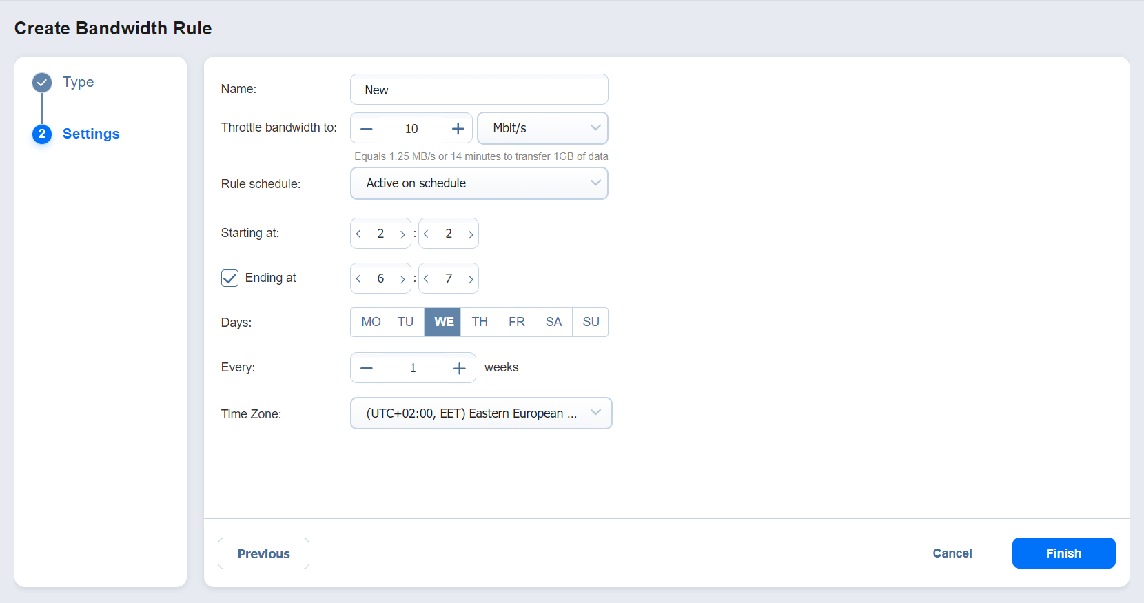 Elija un tipo para su regla de ancho de banda y haga clic en Siguiente:
