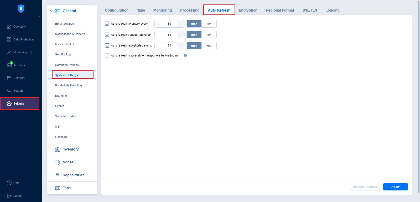 4. Después de realizar los cambios necesarios, haga clic en Aplicar. También puede hacer clic en Descartar cambios para descartar los cambios realizados.