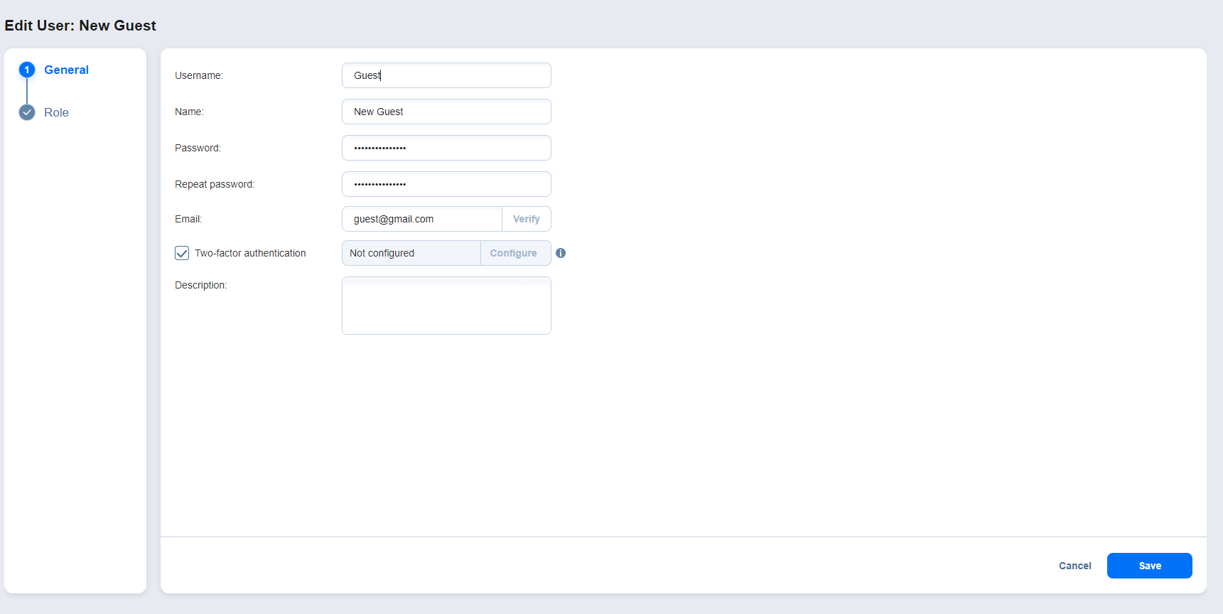 8. En la pestaña Rol, edite el rol del usuario.