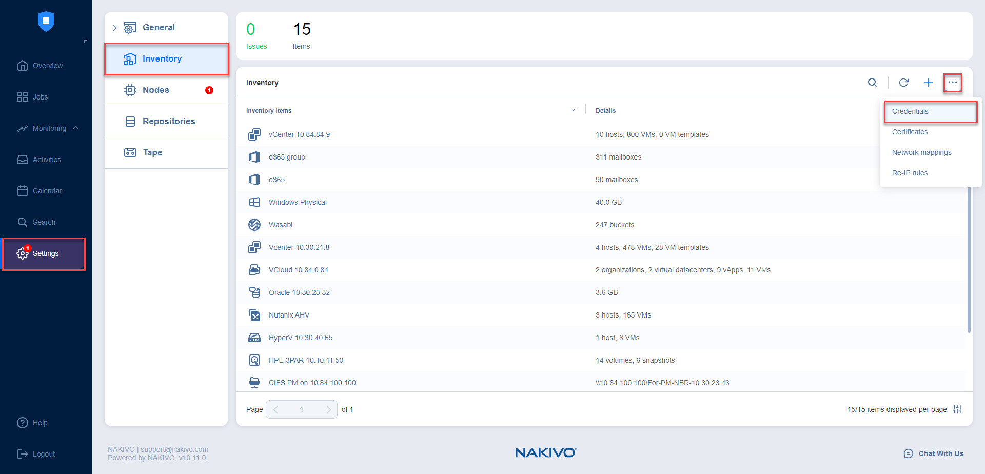 Vaya a Ajustes > Inventario > Gestionar > Credenciales.