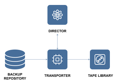 En NAKIVO Backup & Replication, el proceso de almacenamiento de los backups en cinta consta de dos etapas:
