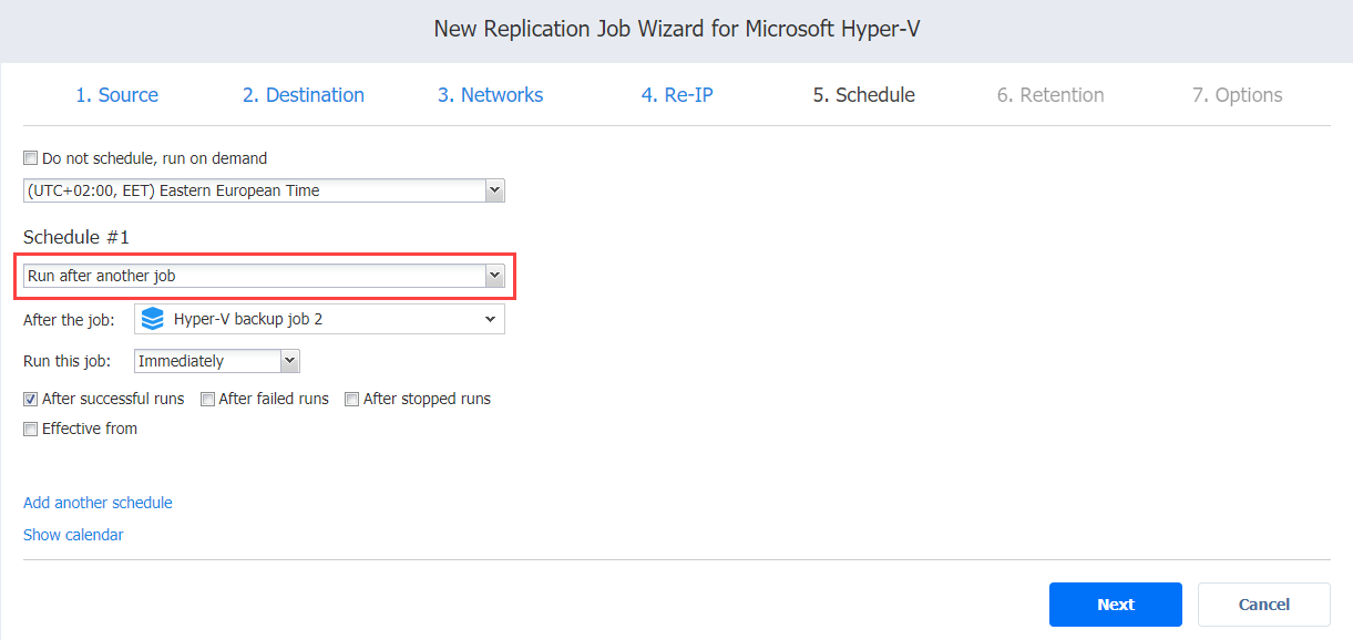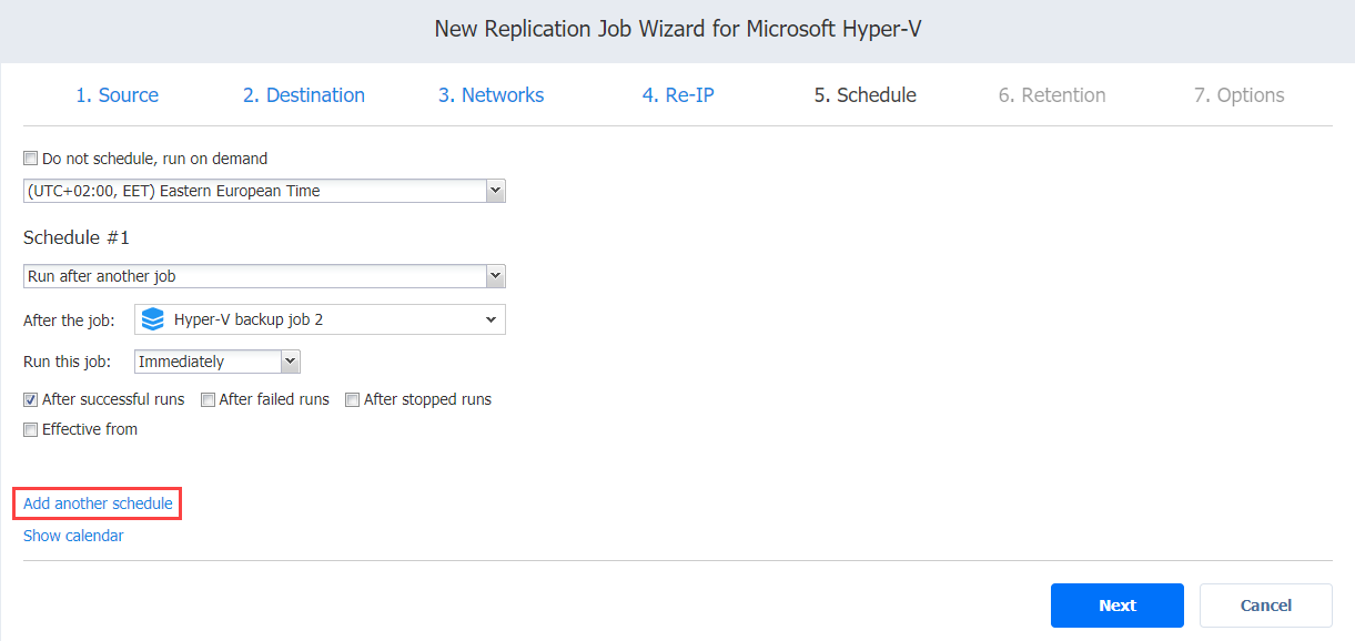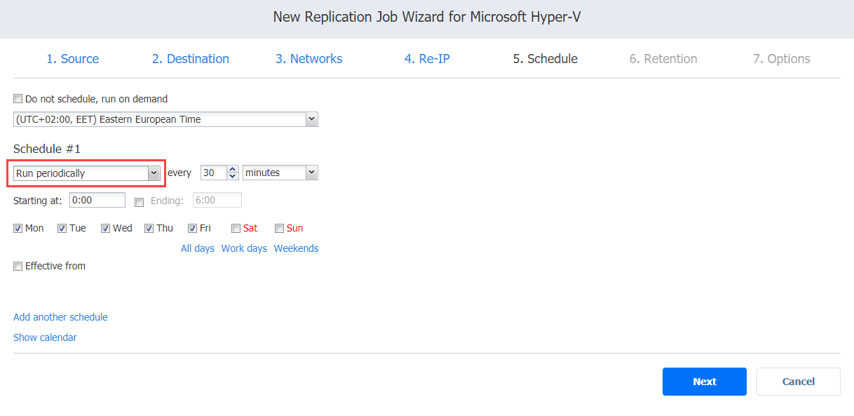Asistente de trabajos de replicación para Hyper-V: Programación