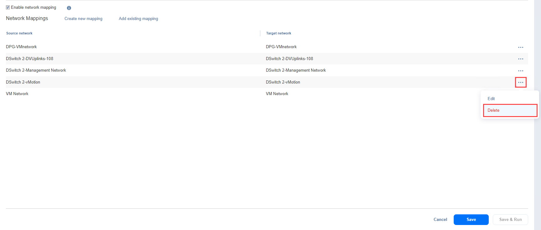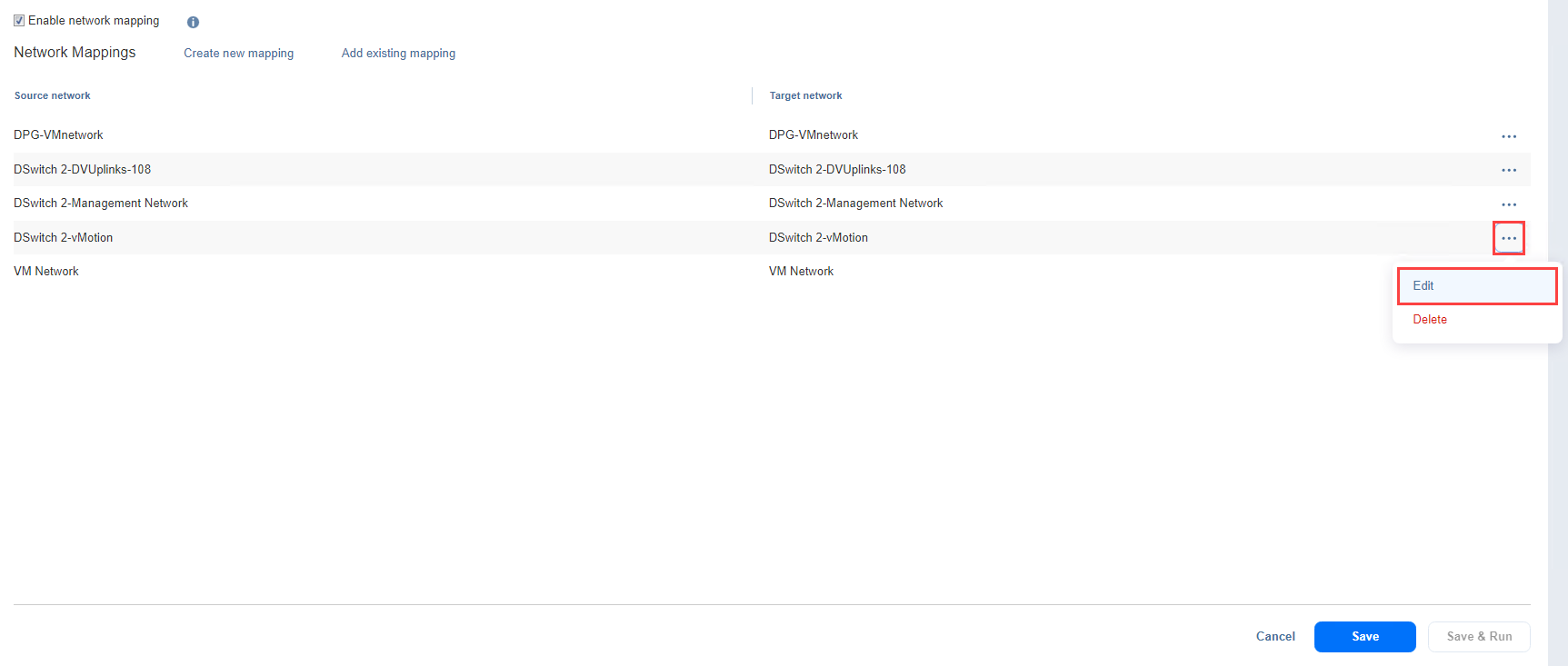 1. Sitúe el puntero sobre el elemento necesario en la lista Mapeos de la red y haga clic en el botón de elipsis Gestionar situado a la derecha del elemento. A continuación, haga clic en Editar.