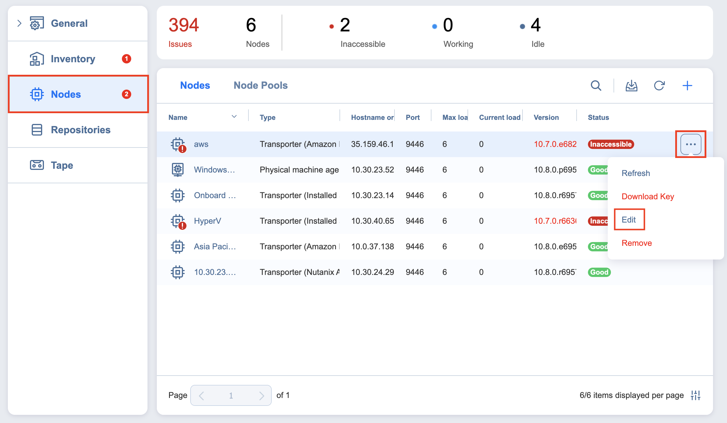 Nombre de host o IP: aquí puede editar la dirección IP o el nombre de host de la máquina en la que está instalado el nodo. No aplicable a appliance de Nutanix AHV, appliance de VMware vSphere o instancias de Amazon EC2.