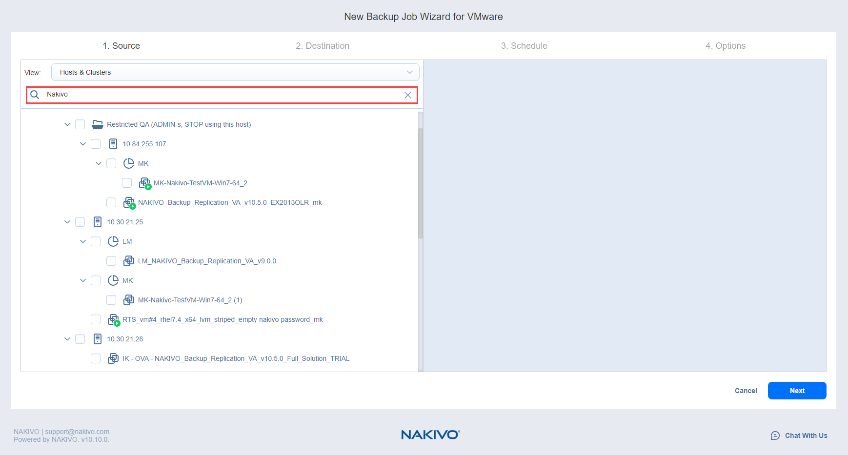 En la página de origen del asistente, puede añadir máquinas virtuales de VMware a su job de backups utilizando una de las vistas de inventario. Proceda como se describe en las secciones siguientes: