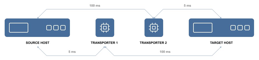 Por defecto, el producto determina automáticamente qué transportador debe utilizarse en función de la proximidad de un transportador al servidor de origen o de destino. La proximidad se mide de acuerdo con el tiempo de ida y vuelta del ping.
