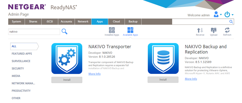 Instalación en NETGEAR ReadyNAS mediante aplicaciones disponibles