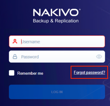 Si olvida la contraseña utilizada para iniciar sesión en NAKIVO Backup & Replication, puede recuperarla siguiendo los pasos que se indican a continuación: