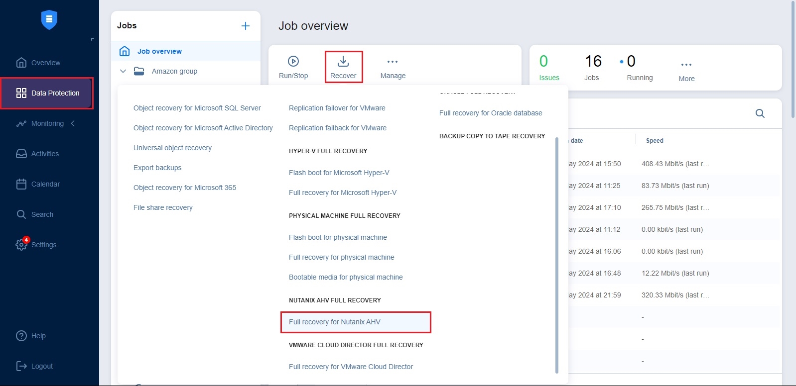 Haga clic en Recuperación completa para Nutanix AHV en Recuperación completa de Nutanix AHV.