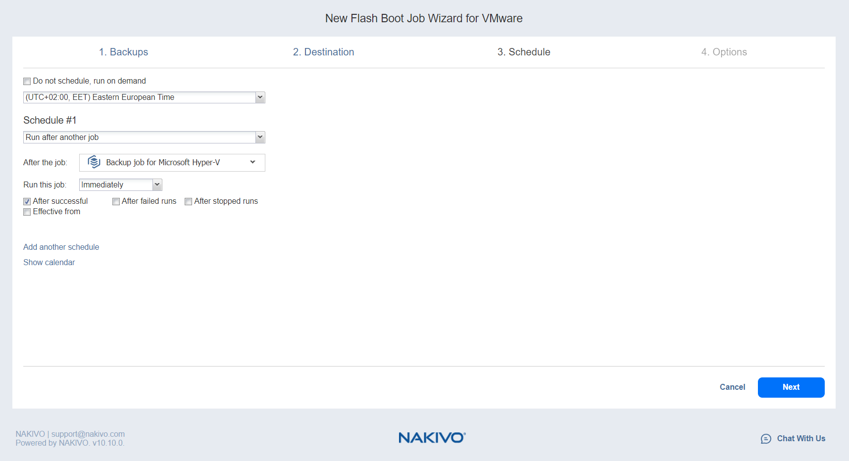 Asistente para VMware Flash Boot Job: Programación
