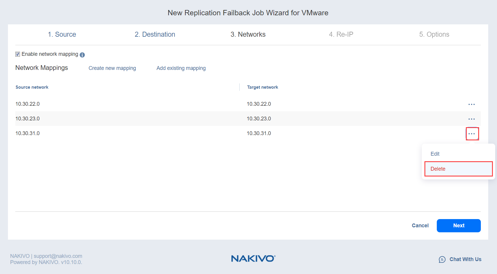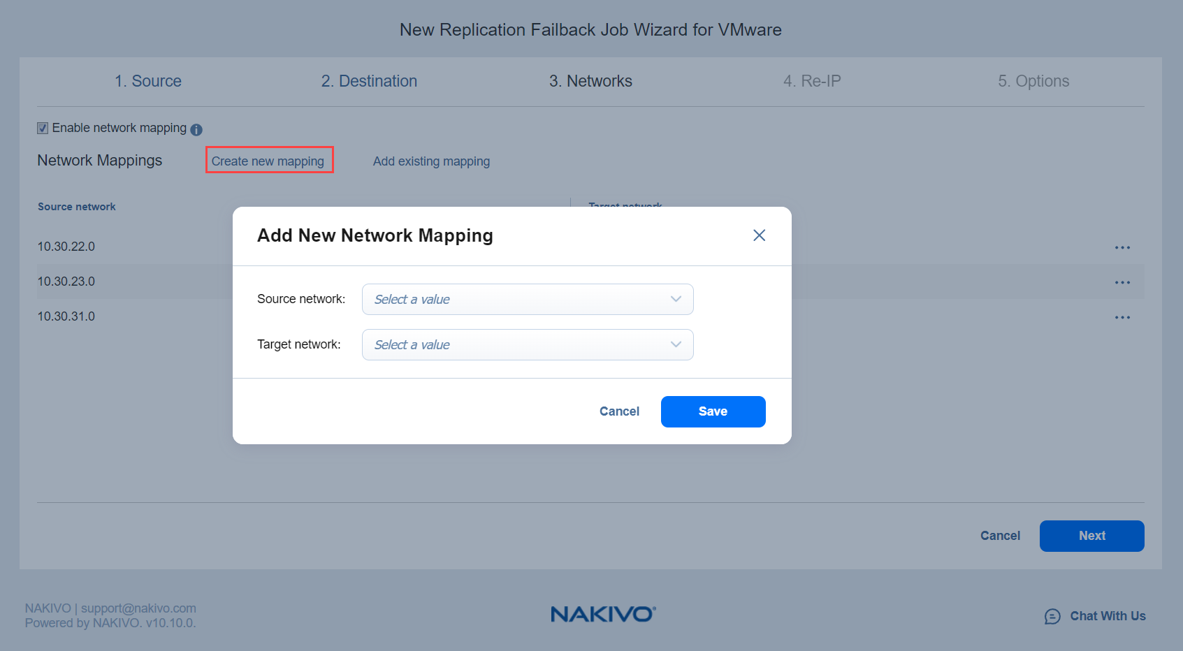 Asistente para jobs de conmutación por error para VMware: Redes