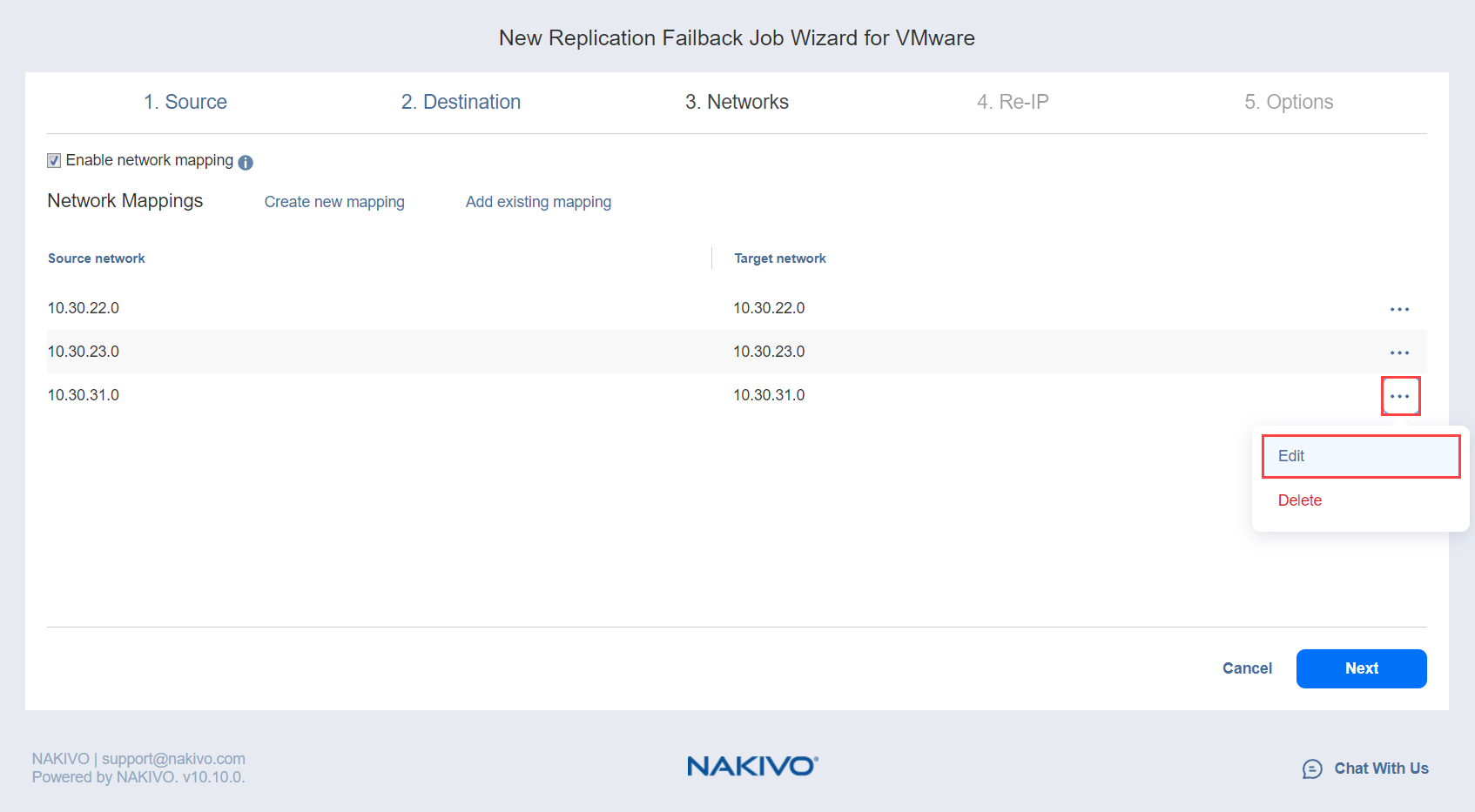 Se abre el cuadro de diálogo Editar mapeo de la red. Elija un elemento adecuado de la lista desplegable Red de destino y, a continuación, haga clic en Guardar.