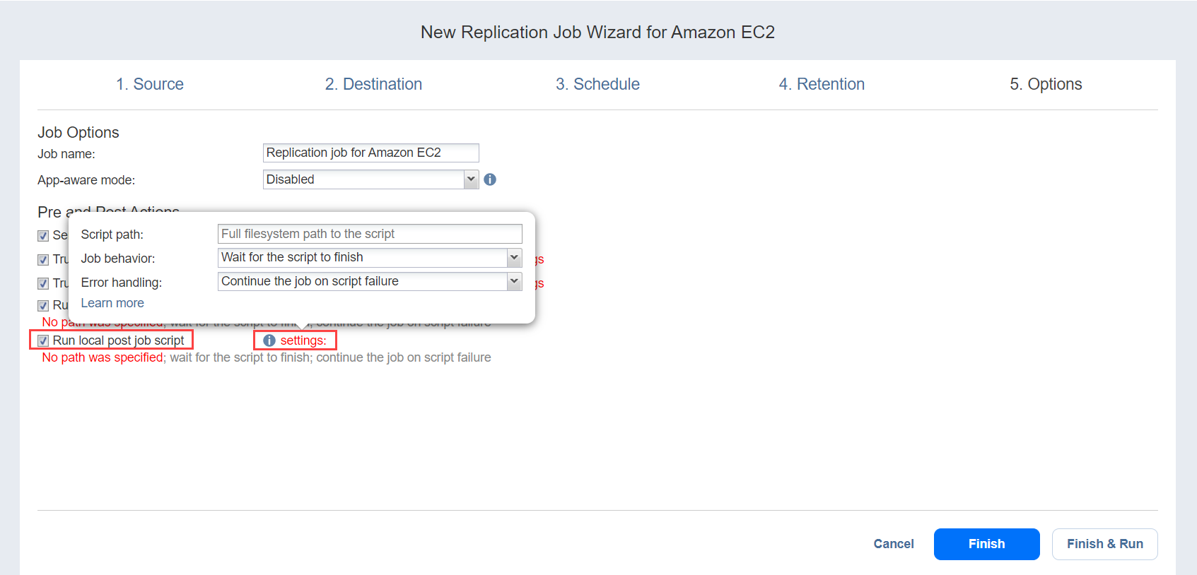 Seleccione la opción Ejecutar script local posterior al job.