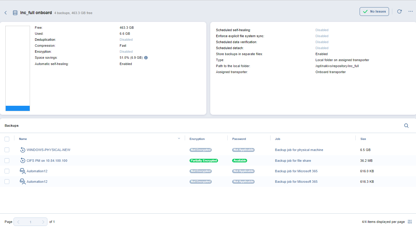 Los repositorios independientes utilizados como miembros de repositorios federados no se muestran en la tabla Repositorios.