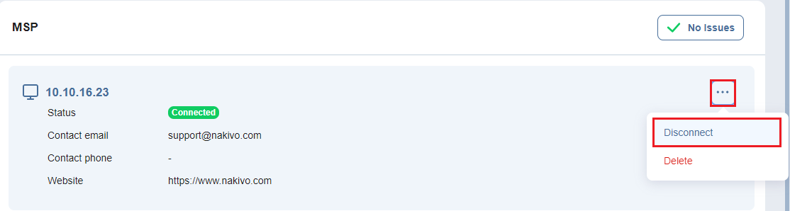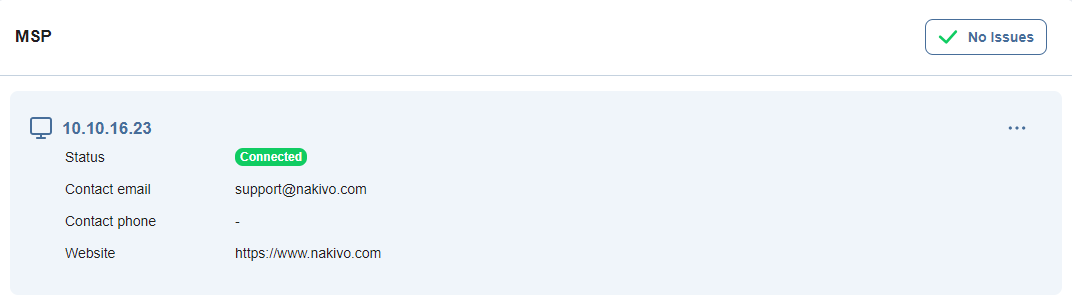 Conectado: Su NAKIVO Backup & Replication está conectado al MSP.