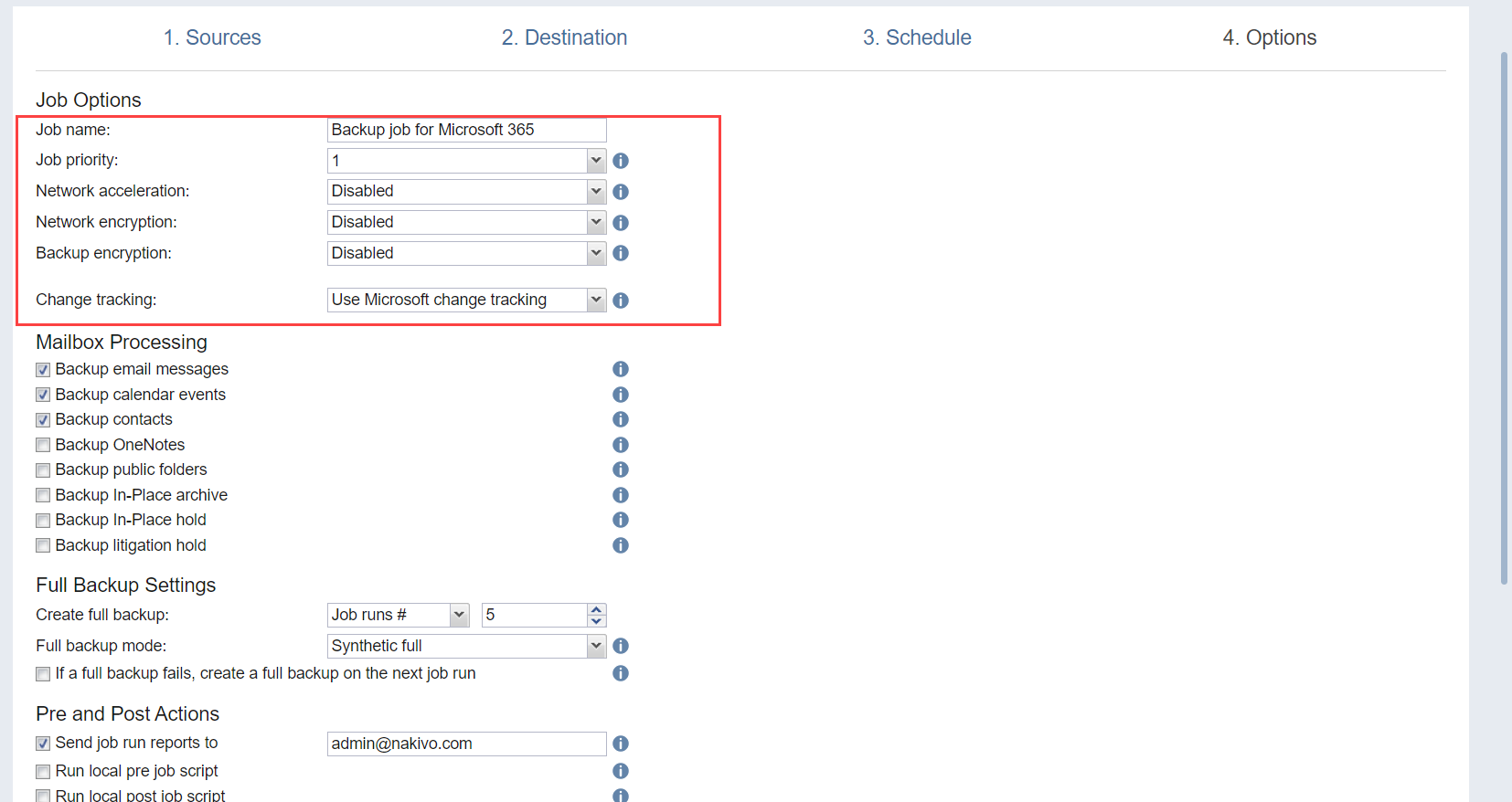 In this section, you can specify a name and a priority level for the backup job, change tracking, encryption, and other options. Proceed as described below: